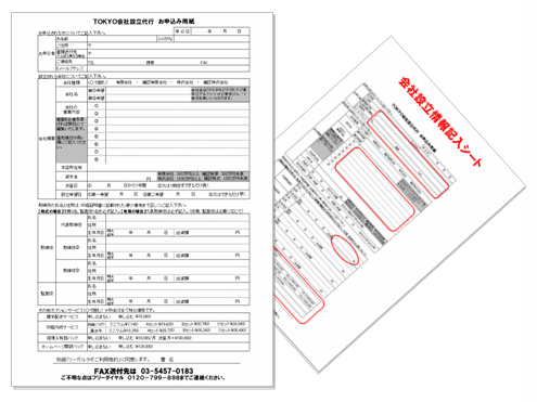 FAXで会社設立代行。FAXで会社設立代行のお申し込みが可能です。 |