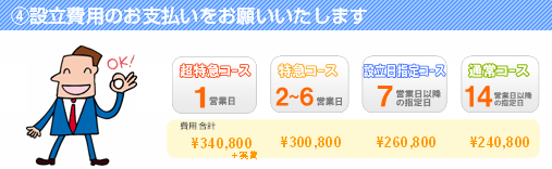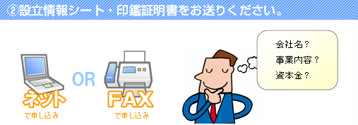 ※ 設立される会社の商号、事業内容、役員のお名前、資本金などをお知らせいただきます。
